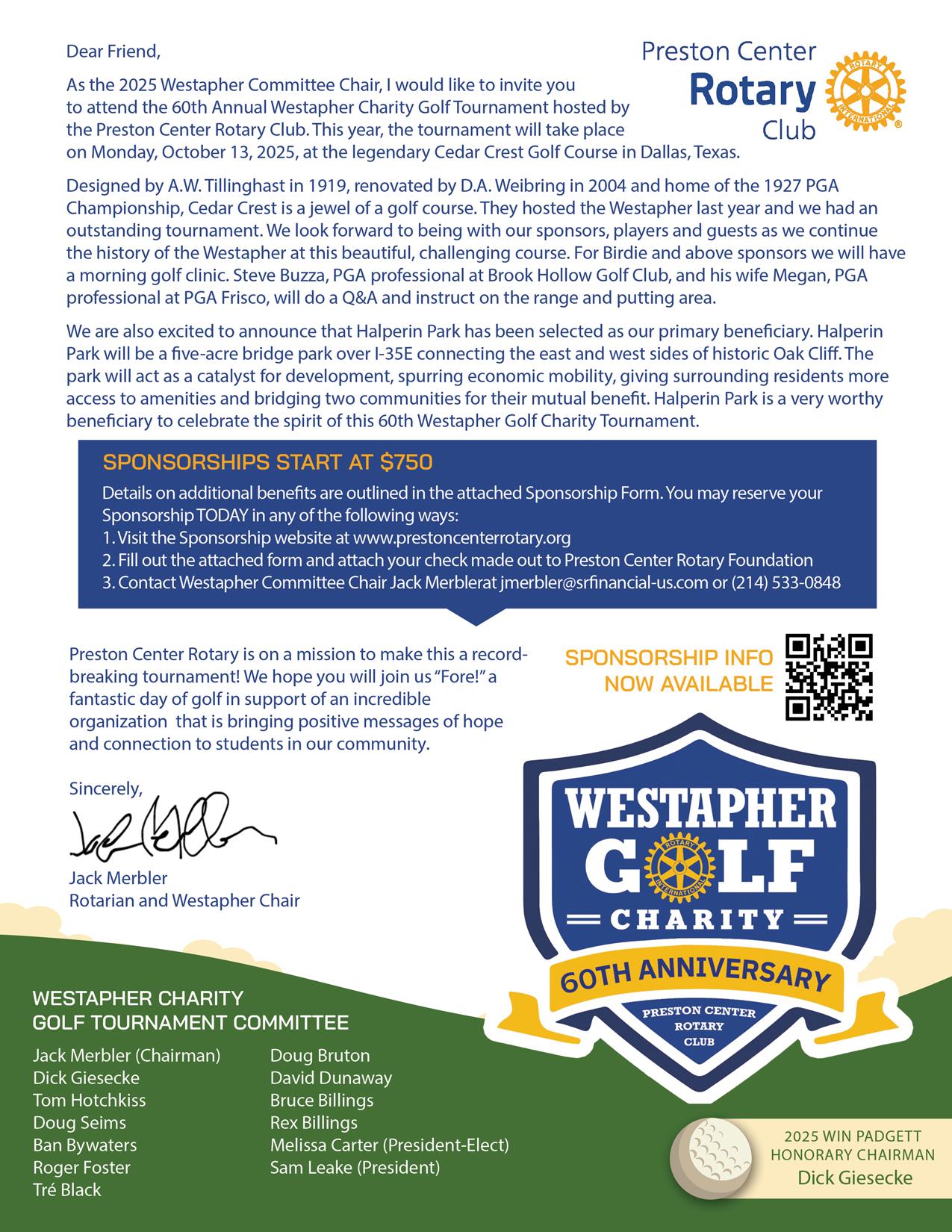 click on the "Sign Up!" link to register for the 60th Annual (2025) Westapher Golf Tournament
