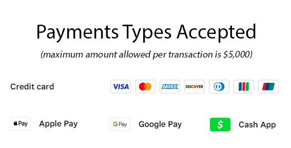 If you would like to make a payment via credit card, Apple Pay, Google Pay or Cash App, you may do so by selecting the [Pay Online] button below. There is a maximum amount allowed per transaction of $5,000 set by payment gateway provider.